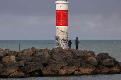 - Fishing at the pier while the sky turns orange